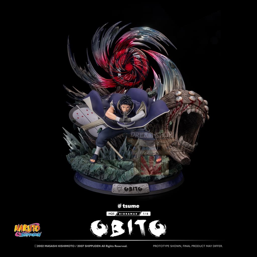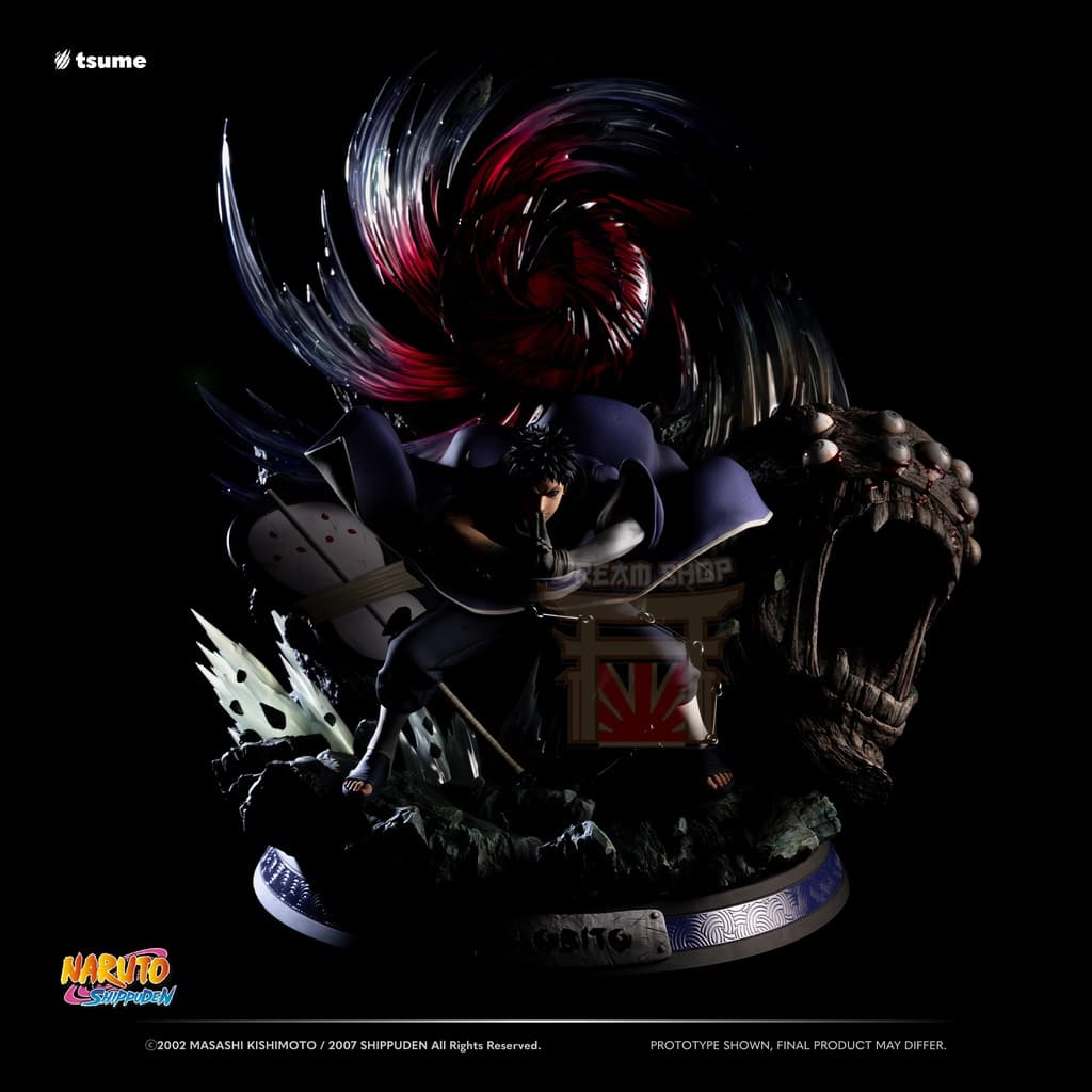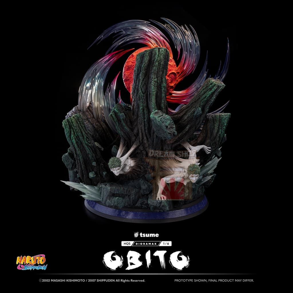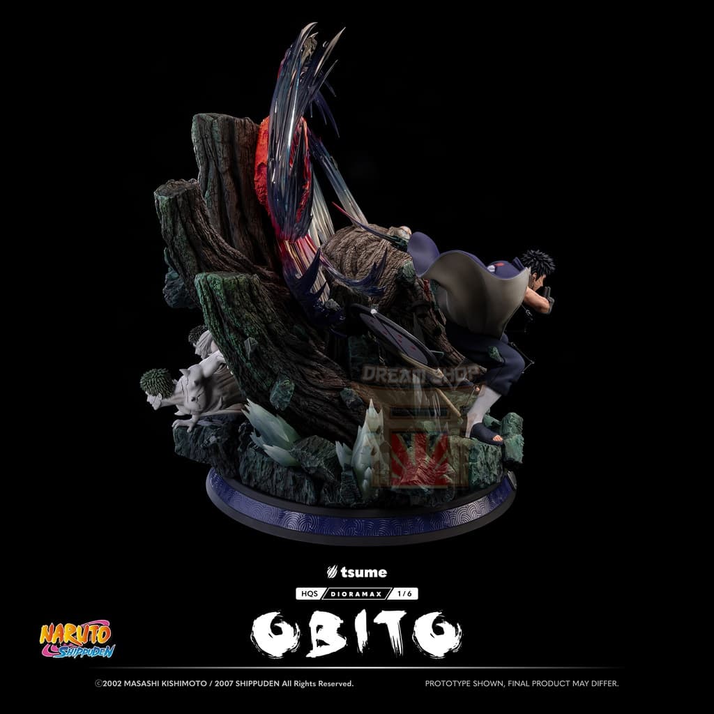 La statua include un busto alternativo di Obito nei panni di “Madara”, completo della sua maschera distintiva. Questo pezzo permette di mostrare il personaggio in due momenti chiave del suo viaggio.