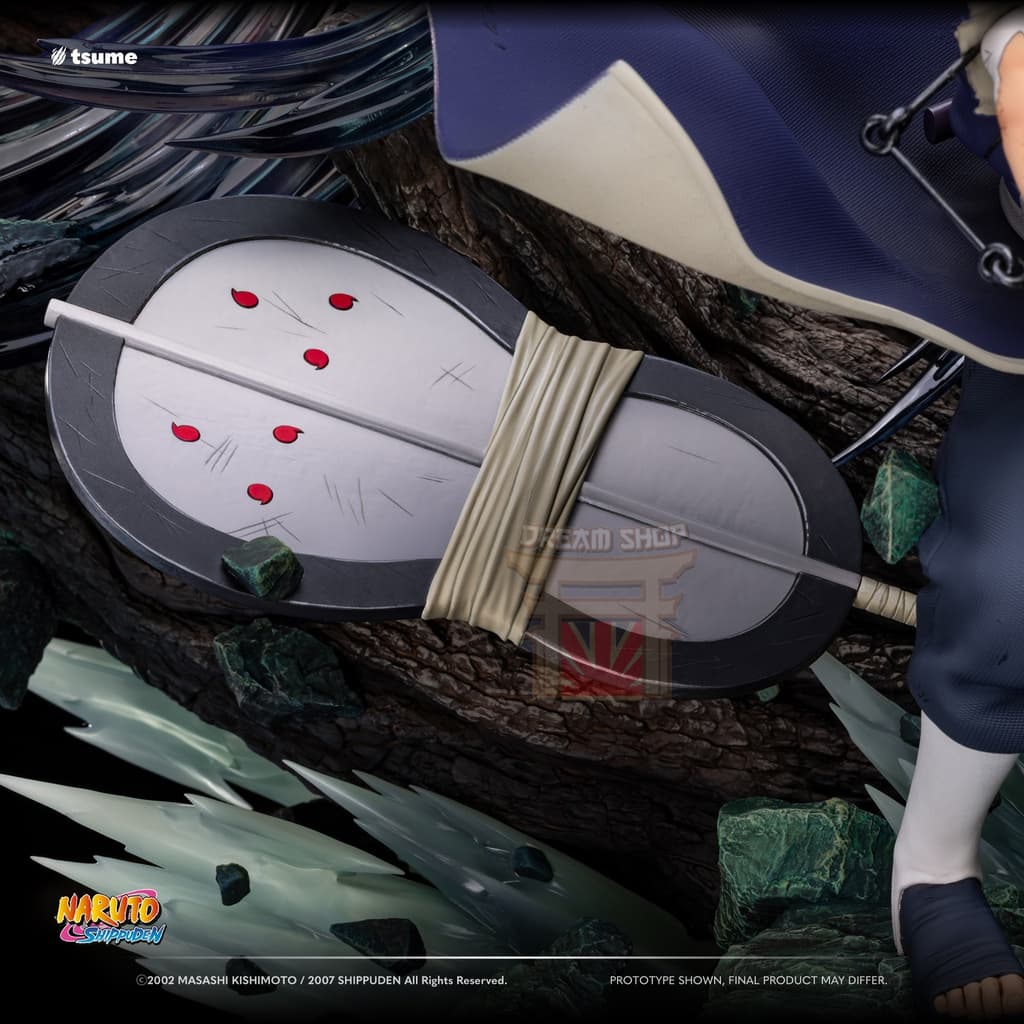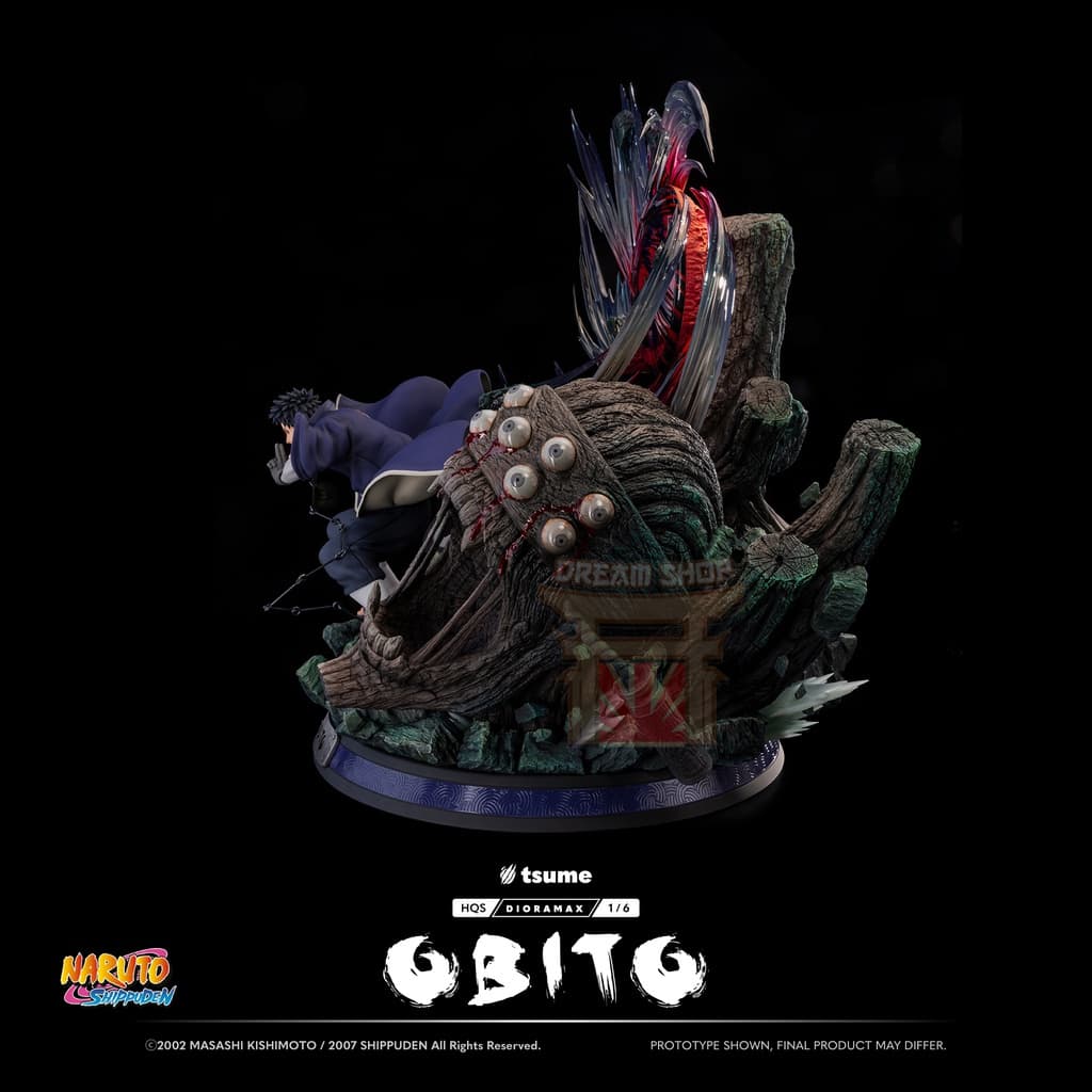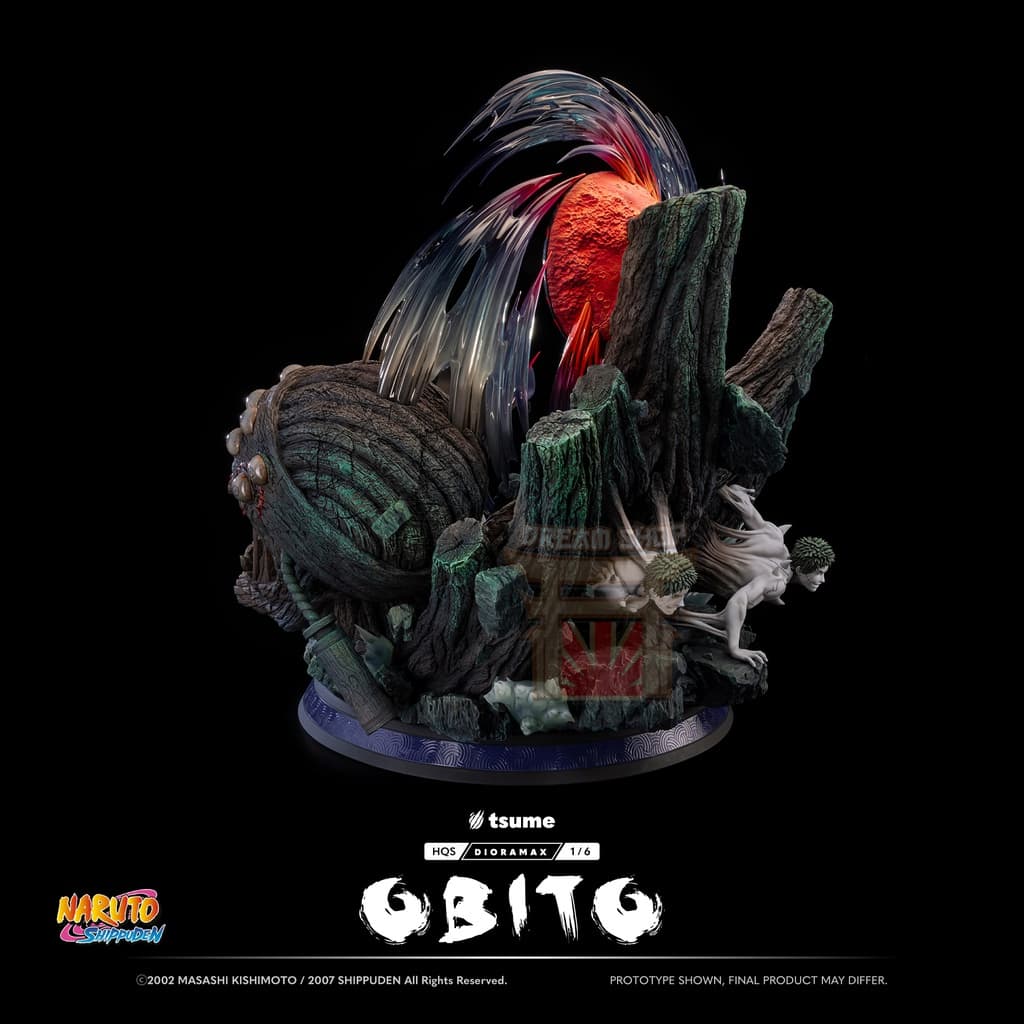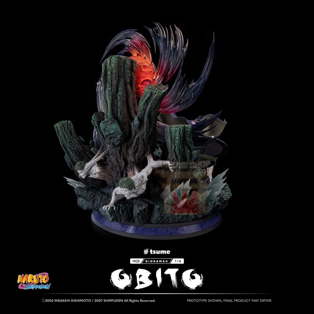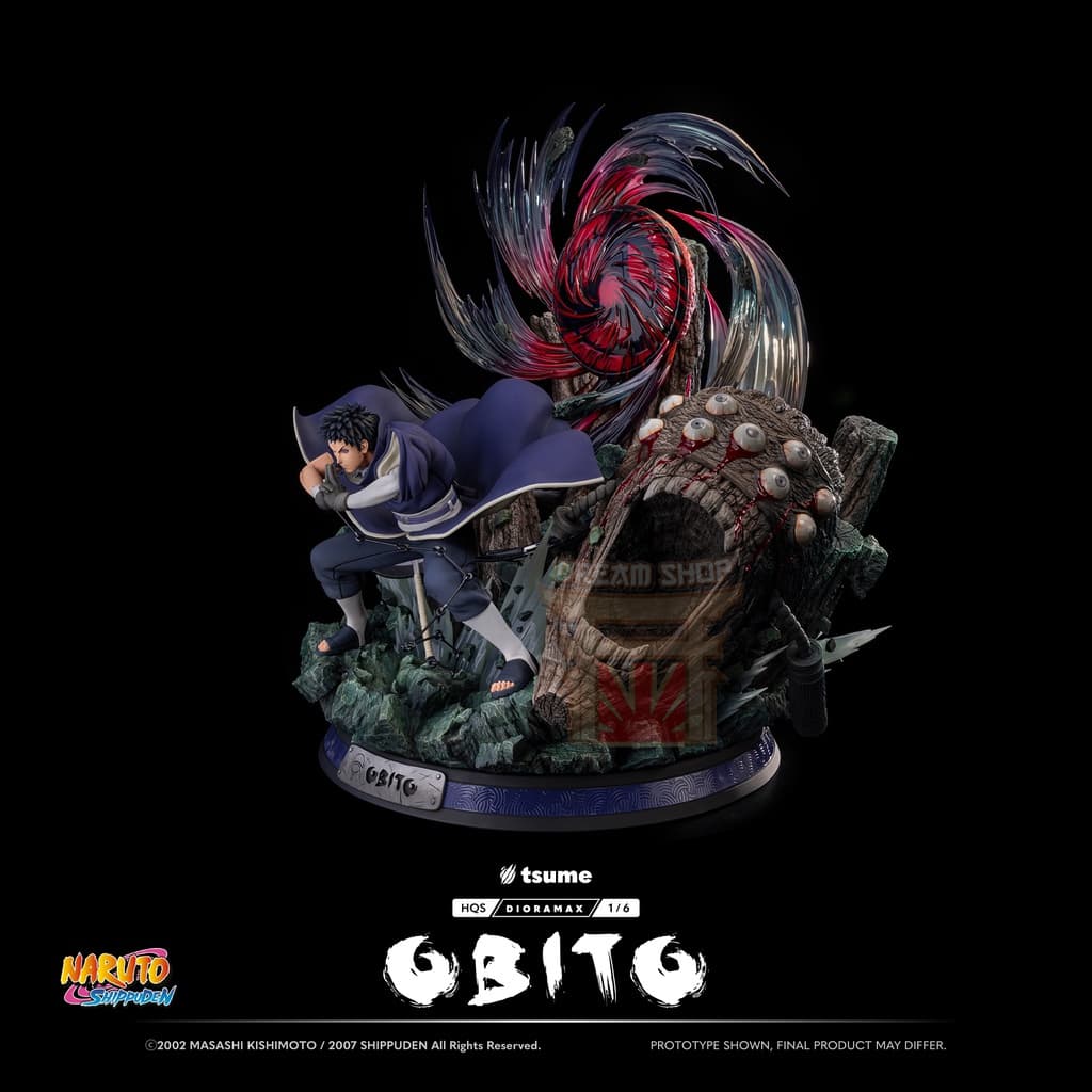 La statua include un busto alternativo di Obito nei panni di “Madara”, completo della sua maschera distintiva. Questo pezzo permette di mostrare il personaggio in due momenti chiave del suo viaggio.